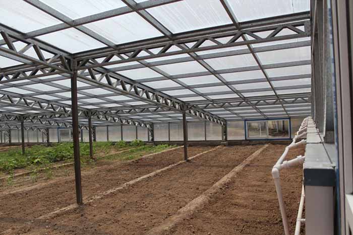 The inner layer is anti-condensed polycarbonate hollow board, and the surrounding wall is made of polycarbonate hollow board or glass according to the conventional requirements. According to the difference of regional climatic conditions, in some cold areas (Jilin, Heilongjiang, etc.), the north wall can be The insulation composite board can also be used to install sliding windows to increase the greenhouse ventilation area.